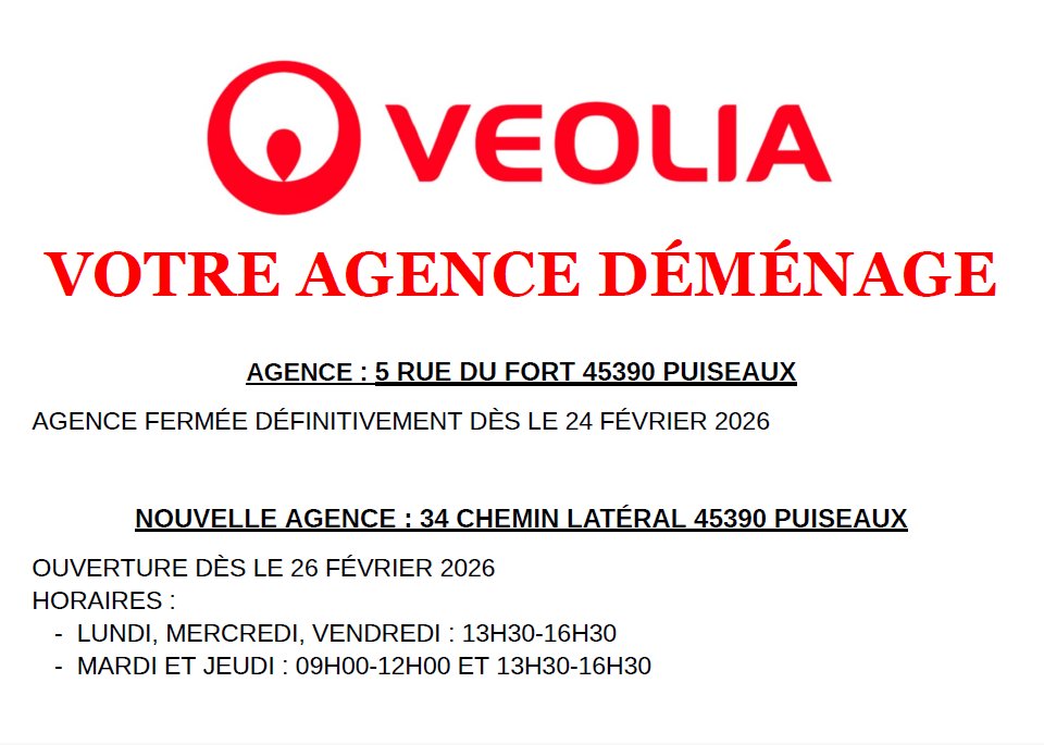 La nouvelle agence est désormais au 34, Chemin Latéral, 45390 PUISEAUX.