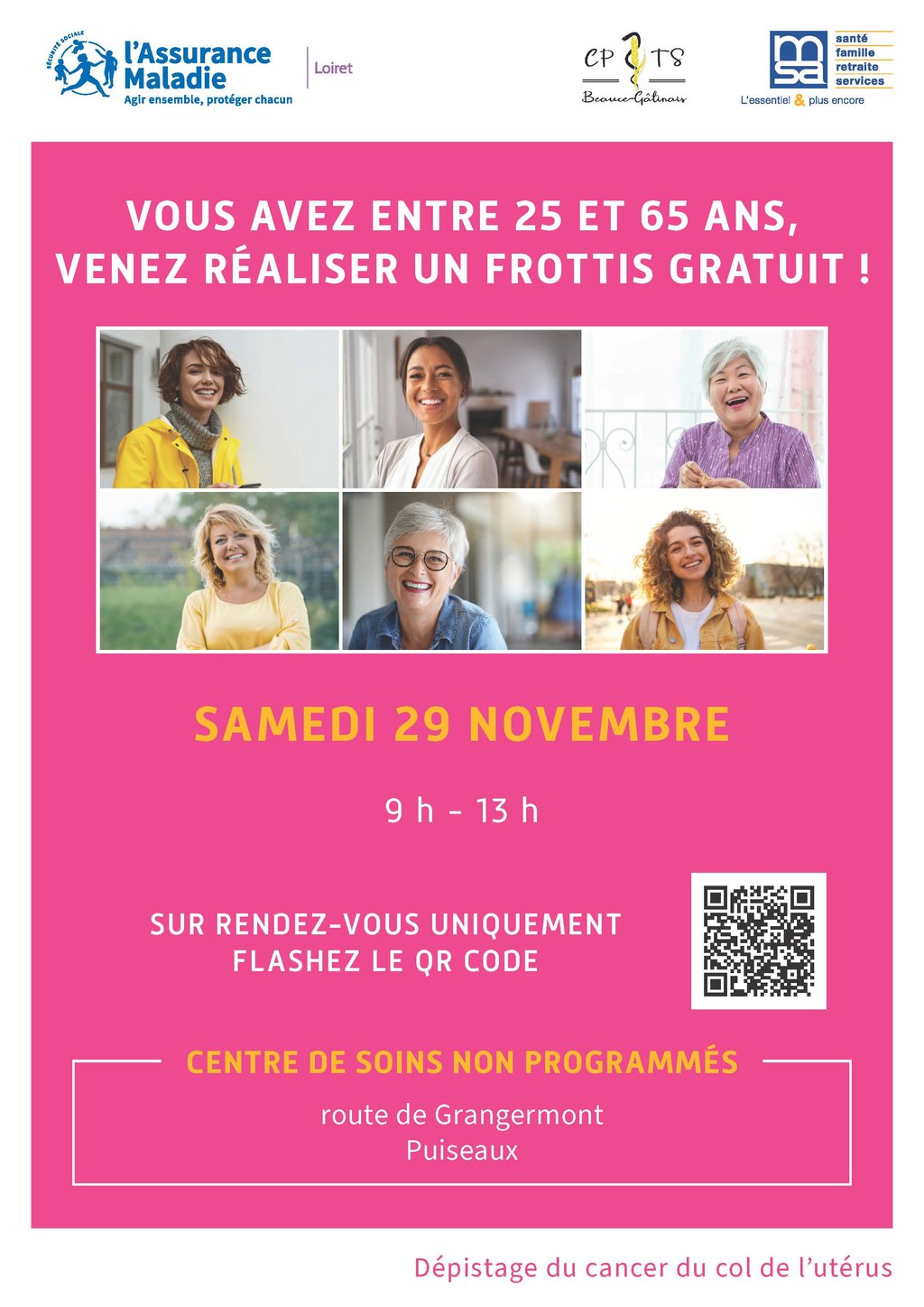 📢 Journée de dépistage pour le frottis à Puiseaux